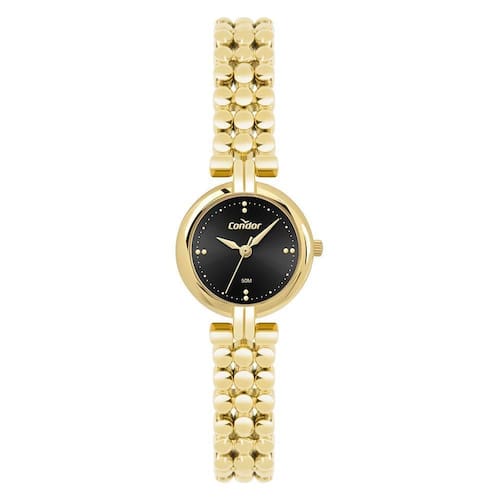 Relógio condor feminino ref: co2035nut/5p bracelete dourado Descrição do produto: Caixa de metal Pulseira de metal estilo bracelete Vidro de cristal mineral Fundo pressão Resistente à água 5 atm Diâmetro / largura da caixa: 24.00 mm Alimentação do maquinário: bateria Maquina japonesa Mostrador preto de 1 ano Marca: Não Informado