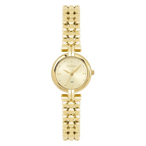 Relógio condor feminino ref: co2035nut/5x bracelete dourado Descrição do produto: Caixa de metal Pulseira de metal estilo bracelete Vidro de cristal mineral Fundo pressão Resistente à água 5 atm Diâmetro / largura da caixa: 24.00 mm Alimentação do maquinário: bateria Maquina japonesa Mostrador dourado de 1 ano Marca: Não Informado