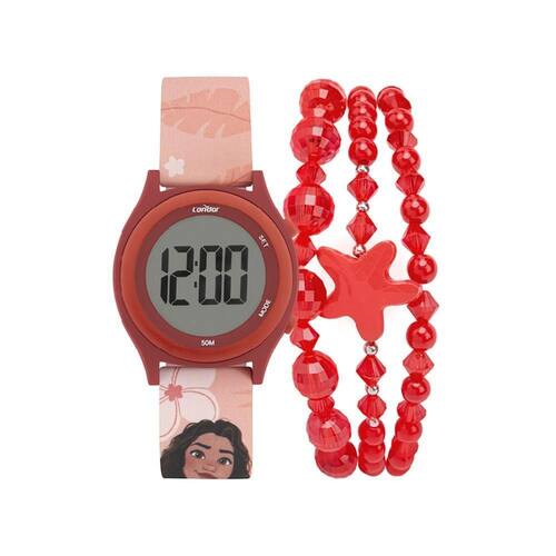 Relógio Condor Feminino Ref: Cobj3572aj/k8t Infantil Moana DESCRIÇÃO DO PRODUTO: Caixa de Resina Vermelha Escura com detalhes em Vermelho Pulseira de Silicone Vermelha Clara Estampada com personagem Moana Fundo de Parafusado Diâmetro / Largura da Caixa: 36.00 MM Funções: Digital, Calendário Resistente à água 5 ATM Alimentação do Maquinário: Bateria Maquina Japonesa Mostrador Vermelho com detalhes em branco Linha: Condor Kids + Pulseira de miçanga Infantil Imagem meramente ilustrativa da pulseira Produto Oficial Licenciado Disney Classificação Indicativa: A partir de 4 Anos de Idade de 1 Ano Marca: Não Informado Ean: 7891530859212