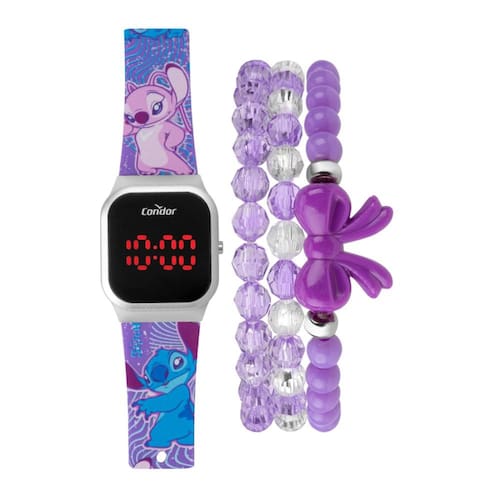 Pulseira de Silicone Lilás Estampada com personagens Stitch e Angel
