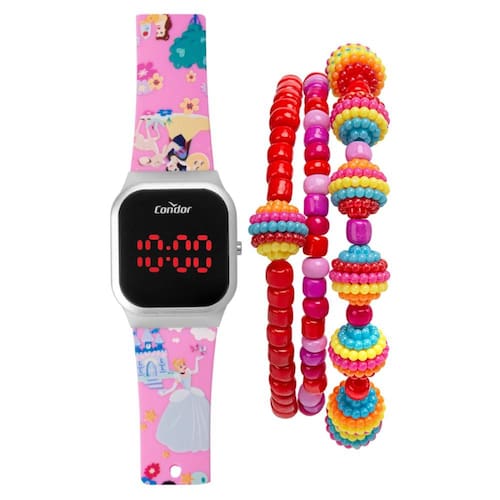 Pulseira de Silicone Rosa Estampada com personagens Princesas da Disney