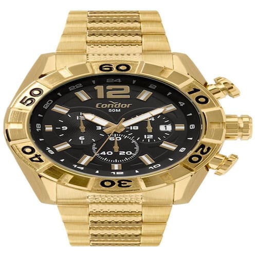 Relógio Condor Masculino Civic Dourado COVD33AVT/4P Relógio Condor Masculino Civic Dourado COVD33AVT/4P Relógio Condor Civic masculino, caixa Best Seller dourada tamanho 50mm dual time com pulseira 3 links dourada texturizada e mostrador preto. Estilo e elegância para homens com atitude e que gostam de marcar presença. Fecho: BOTÃO LATERAL Tamanho da caixa: 50 mm Caixa: METALResistente a água: 5 ATM Tamanho da pulseira: 24 mm Pulseira: AÇO