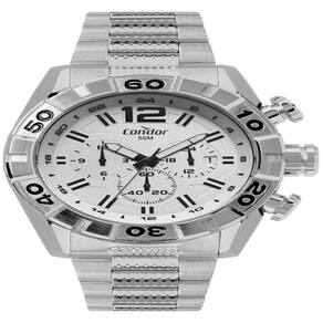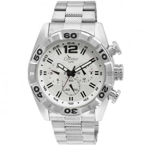 O relógio masculino prateado Condor é um modelo de caixa robusta e com detalhes no aro que enriquecem a peça. Com mostrador branco cheio de detalhes em preto e aro trabalhado, ele foi desenvolvido para homens que querem marcar sua presença. Possui maquinismo analógico, pulseira de aço e resistência à água de 5 ATM.