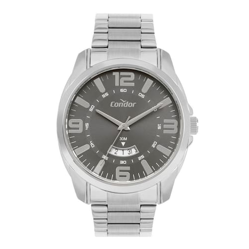 Relógio Condor Masculino Dia A Dia Prata COPC32DI/4C Relógio Condor masculino com pulseira de aço, super resistente. É um modelo robusto, com caixa de 48mm, perfeito para homens que querem se destacar em qualquer ocasião. Seu mostrador cinza apresenta números grandes, de fácil leitura, e calendário. Possui resistência à água de 3 ATM.
