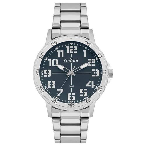 O relógio Condor CO2035NRU/4A traz um visual impactante com seu mostrador azul escuro contrastando com os marcadores brancos, oferecendo excelente visibilidade e um toque moderno. A caixa robusta de 47 mm e a pulseira em aço inox conferem presença e resistência ao acessório.