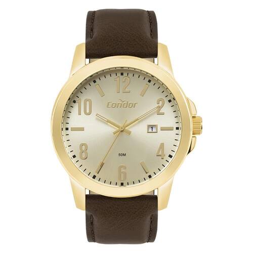 Relógio Condor Masculino Ref: Co2115nav/5x Casual Dourado DESCRIÇÃO DO PRODUTO: Caixa de Metal Pulseira de Couro Ecológico Marrom Claro Fundo de Pressão Diâmetro / Largura da Caixa: 44.00 MM Funções: Analógico, Calendário Resistente à água 5 ATM Alimentação do Maquinário: Bateria Maquina Japonesa Mostrador Dourado com números