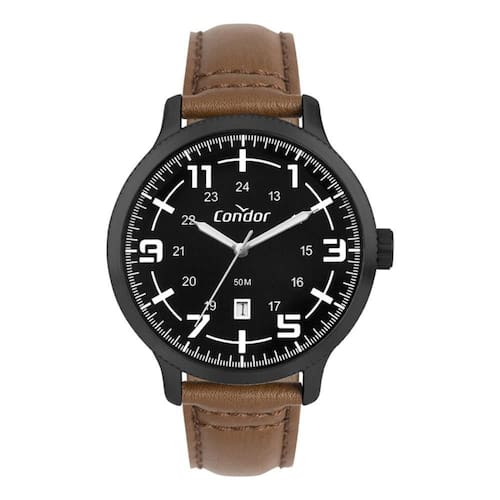 Relógio Condor Masculino Ref: Co2115nbq/3p Casual Black DESCRIÇÃO DO PRODUTO: Caixa de Metal Pulseira de material sintético Marrom Fundo Diâmetro / Largura da Caixa: 45.00 MM Funções: Analógico, Calendário Resistente à água 5 ATM Alimentação do Maquinário: Bateria Maquina Japonesa Mostrador Preto com números de 1 Ano Marca: Não Informado
