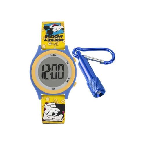 Relógio Condor Masculino Ref: Cobj3572ap/k8a Infantil Mickey DESCRIÇÃO DO PRODUTO: Caixa de Resina Azul com detalhes em Amarelo Pulseira de Silicone Amarela Estampada com personagem Mickey Mouse Fundo de Parafusado Diâmetro / Largura da Caixa: 36.00 MM Funções: Digital, Calendário Resistente à água 5 ATM Alimentação do Maquinário: Bateria Maquina Japonesa Mostrador Branco com detalhes em preto Linha: Condor Kids + Lanterna Produto Oficial Licenciado Disney Classificação Indicativa: A partir de 4 Anos de Idade de 1 Ano Marca: Não Informado
