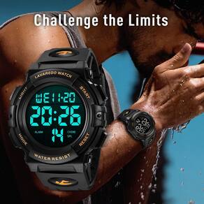 - Multifuncional: display digital, luz de fundo LED, data, alarme, resistente a choques, cronômetro. Perfeito para esportes ao ar livre e indoor, como corrida, escalada, pesca, ect.