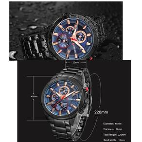 Novo relógio impermeável casual de aço de luxo Marca: Curren Correia Material: Aço Inoxidável Características: Rugged Profundidade impermeável: 3bar Forma de discagem: rodada Especificação: Diâmetro de discagem: 45 mm Espessura da casca: 12 mm Comprimento da correia: 22cm Largura de banda: 2,2cm