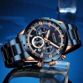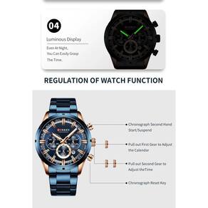 Relógio curren masculino todo funcional 8355 azul e dourado