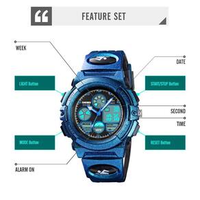 Relógio digital para meninos Outdoor Sports 50M, relógios eletrônicos à prova d'água, despertador, 12/24 H, cronômetro, calendário, relógio de pulso para meninos e meninas - pulseira azul