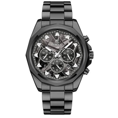 Enriquecido com características como cronômetro e calendário completo, este relógio atende ao ágil ritmo da vida moderna. Sua construção robusta de 11,5 mm de espessura de estojo e diâmetro generoso entre 45 e 49 mm fazem uma declaração de estilo ousada, complementada pela pulseira de aço inoxidável que oferece conforto inigualável durante todo o dia.
