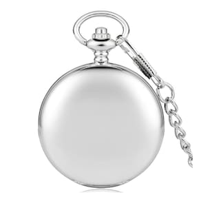 Lindo relógio de bolso prateado polido e corrente com clip, perfeito para presentear colecionadores de relógios.