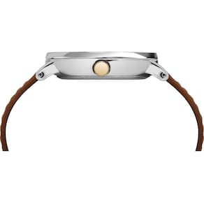 PRODUTO INTERNACIONAL. Este relógio é o encontro perfeito entre estilo premium e artesanato de precisão. Com seu mostrador azul rico e caixa prateada, emparelhados com uma cinta de couro bronzeado, você terá um visual distinto e elegante, pronto para usar do dia para a noite