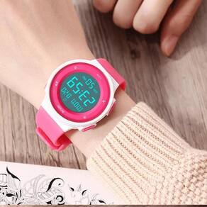 Relógio de Criança Infantil Skmei 1445 Esportivo Digital Cor: Rosa Relógio de Criança Infantil Menino Menina Skmei 1445 Esportivo Digital Multifuncional Características: Marca: Skmei Modelo: 1445 Categoria: Digital 2 Horários Formato da hora: 12/24 Despertador: Sim Soneca: Sim Bip de hora em hora: Sim Calendário: Sim Mostra o Dia da Semana: Sim Mostra o Dia do Mês: Sim Cronômetro: Sim Cronômetro Regressivo timer : Sim Luz: Sim Cor da Iluminação: Verde Resistente à Água: 5BAR/5ATM/50M Pode ser para nadar no raso, por pouco tempo submerso - Respingos: Sim - Chuva: Sim - Lavar Louça: Sim - Natação: Sim - Mergulho: Não Característica do Vidro: Acrílico Tipo de Fecho: Fivela Simples Material da Caixa: Plástico Material da Pulseira: Silicone Formato da Caixa: Redondo Diâmetro da Caixa: 42 mm Espessura da Caixa: 13 mm Largura da Pulseira: 19 mm Comprimento Máximo da pulseira: 240 mm Alimentação: Bateria Peso Líquido: 41g : 03 Meses Conteúdo da Embalagem: - Relógio - Estojo do relógio - Marca: Não Informado