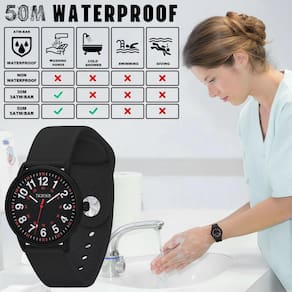 Especificações do produto Forma da caixa: redonda Tipo de tela: 3 mãos Movimento analógico: quartzo japonês Largura da pulseira: 20 mm/0,78 polegadas Diâmetro da caixa: 38 mm/1,49 polegadas Espessura da caixa: 9,9 mm/0,39 polegadas Material da pulseira: silicone Material traseiro da capa: aço inoxidável Material da coroa: aço inoxidável Profundidade resistente à água: 50 metros/164 pés* Os dados são medidos manualmente e podem conter pequenos erros. Consulte o produto real para obter precisão. - Fácil de ler: o relógio com marcações de 12 e 24 horas ajuda você a ler facilmente o horário militar; ponteiro e marcador luminosos; diâmetro da caixa de 38 mm/1,49 pol. - Relógio de enfermeira com segunda mão: relógio analógico japonês com movimento de quartzo, cronometragem precisa. O ponteiro vermelho altamente visível dos segundos facilita a obtenção de leituras de pulso precisas. - Relógio impermeável 5ATM: resistente à água até 50 m (164 pés), adequado para chuveiros de água fria e natação curta, mas não para mergulho ou snorkel! - Durabilidade e conforto: a pulseira de silicone é macia e confortável, fácil de limpar; possui barras de mola de liberação rápida para fácil remoção e substituição. O vidro mineral é resistente ao desgaste e a arranhões. - Compre com confiança: se o relógio parar de funcionar em uso normal dentro de 12 meses após a compra, você receberá um reembolso total ou uma substituição . Sinta-se à vontade para entrar em contato conosco a qualquer momento se encontrar algum problema, forneceremos uma solução satisfatória.