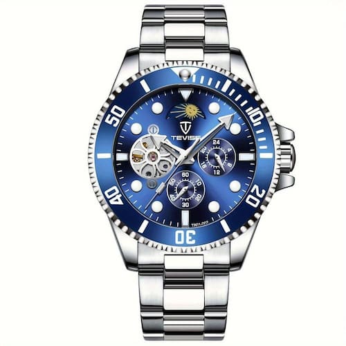 Especificações [Design sofisticado]: Este relógio apresenta um estilo elegante que não só é bonito, mas também extremamente funcional com fase lunar e cronógrafo de 24 horas. [Resistência imbatível]: Desfrute da segurança de um relógio resistente à água até 30 metros, ideal para o uso diário e resistente a pequenos incidentes líquidos. [Brilho noturno]: Os marcadores que brilham no escuro garantem que você possa consultar as horas mesmo nas noites mais escuras, proporcionando visibilidade em qualquer situação. [Operação mecânica]: Aproveite um relógio sem a necessidade de bateria, graças ao seu movimento automático, que capta energia através do seu movimento constante. [Durabilidade duradoura]: Com uma pulseira de aço inoxidável e uma caixa de liga, este relógio foi feito para durar, oferecendo a você anos de uso e estilo.