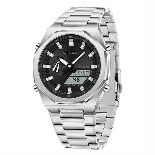 Mais do que apenas um acessório de moda, este relógio é equipado com funções essenciais como alarme, calendário dia/dia/semana e exibição dupla de hora. Com resistência à água de 5ATM, não há limites para onde ele pode te acompanhar. Projetado para o uso diário, é perfeito para homens modernos que buscam unir estilo e praticidade em um único produto.