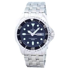 O relógio de mergulho profissional RATIO FreeDiver combina construção robusta com design minimalista, criando uma peça que se destaca tanto pela funcionalidade quanto pelo estilo. Fabricado em aço inoxidável 316L maciço, a caixa e a pulseira do relógio são notavelmente mais espessas do que as de muitos modelos de entrada, oferecendo durabilidade e conforto excepcionais. As laterais bem arredondadas e as proteções da coroa foram projetadas para evitar irritação no pulso, tornando-o ideal para uso prolongado.