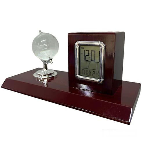 Relógio de Mesa Digital em Madeira com Globo de Cristal