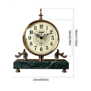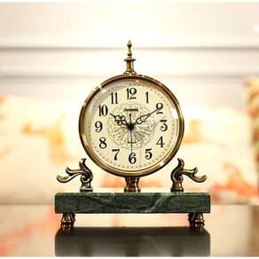 Características principais: Design: O relógio possui um formato redondo clássico, com uma base robusta de mármore que confere estabilidade e um toque de luxo.