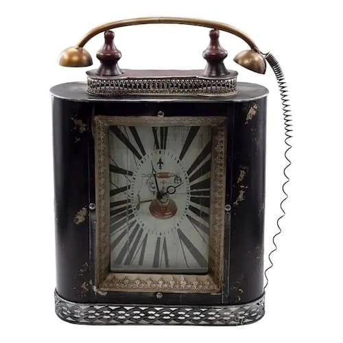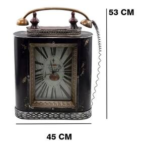 Relógio De Mesa Retrô Metal Vidro Telefone Antiguidade Uma coleção inspirada no design e objetos retrôs para ambientes que pedem toda a personalidade dessa tendência Esse relógio conta com peças em metal e vidro. Aposte na composição em racks, mesas de canto ou de centro.