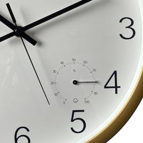 Este relógio de parede vai além de sua principal função de mostrar as horas; ele é equipado com termômetro e higrômetro integrados, facilitando o monitoramento da temperatura e da umidade do seu espaço em tempo real.