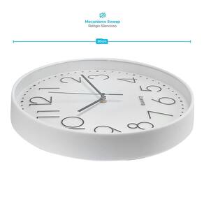 Relógio de Parede 30cm Estilo Minimalista Números 5731 Cor: Branco Perfeito para quem busca uma opção única e estilosa para a casa, este relógio é feito de material resistente, com acabamento reforçado, números grandes e design moderno. Seu mecanismo é ultra silencioso sem tic-tac e de baixo consumo, funcionando com apenas 1 pilha AA pilha comum, não acompanha pilha .