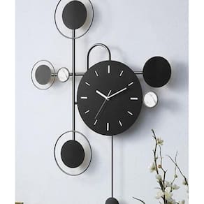 Relógio de parede 3d contemporâneo nórdico metal 84x55 Uma coleção luxuosa de relógios em metal Com design europeu, esses modelos atendem os mais exigentes na arte da decoração. Ideal para ambientes que pedem toda a personalidade dessa tendência Sua estrutura tem formato superdimensional, em metal preto, com 2 detalhes espelhados, relógio central também em fundo preto, com números branco. Uma peça decorativa de fino acabamento e requinte. O design geral apresenta um desenho geométrico que exibe totalmente uma aparência bonita e elegante. Silencioso e sem tique-taque: o movimento de alta qualidade tem excelente qualidade, garantindo tempo preciso e uma vida útil mais longa. Movimento de quartzo silencioso, sem tique-taque, para garantir que você tenha um bom sono e não interfira no ambiente de trabalho. Funciona com pilha aa (acompanha 2 pilhas) . Dimensões Comprimento total: 55 cm Altura total: 84 cm Diâmetro relógio central: 25 cm . Ref: a1654 . Somos a fica em casa ponto com