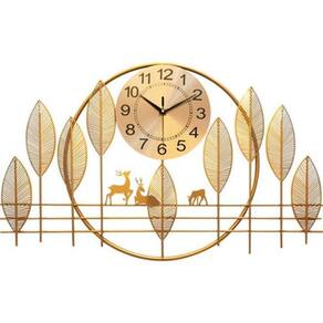Relógio de parede 3d design europeu metal luxuoso 70cm Uma coleção luxuosa de relógios em metal dourado Com design europeu, esses modelos atendem os mais exigentes na arte da decoração. Ideal para ambientes que pedem toda a personalidade dessa tendência Em metal dourado, com lindas folhas e alces, com relógio central redondo Silencioso e sem tique-taque: o movimento de alta qualidade tem excelente qualidade, garantindo tempo preciso e uma vida útil mais longa. Movimento de quartzo silencioso, sem tique-taque, para garantir que você tenha um bom sono e não interfira no ambiente de trabalho. Uma peça decorativa de fino acabamento e requinte Funciona com pilha aa (inclusa) . Dimensões Comprimento total: 86 cm Altura total: 50 cm Diâmetro relógio central: 23 cm . Cor: dourado Ref: a1778