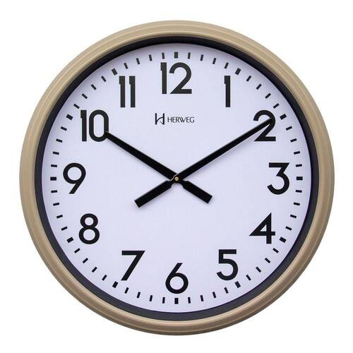 Relógio De Parede 60cm Herweg 6463 Bege Relógio de Parede 60cm Herweg 6463 Bege Relógio de Parede 60cm Herweg 6463 Relógio de Parede Gigante com 61 cm de diâmetro total. O diâmetro do mostrador das horas tem 52 cm. Ideal para grandes ambientes. Caixa em plástico e vidro. Ponteiros em alumínio. Sistema tic-tac, mas não faz barulho porque não possui ponteiro de segundos. Medidas 61x61x7 cm Fácil para pendurar com parafuso e bucha, nunca usar prego na parede. Garantia de 1 ano.