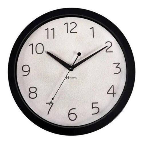 Relógio de Parede Alumínio Imitando Couro Preto 6733 único - Características Gerais do Produto: Alimentação: Pilha AA não inclusa Funcionalidade: Mecanismo Sweep Ponteiro de segundos contínuo ; Produto nacional Material: Alumínio pintado Medidas: A: 30,0 x L: 30,0 x P: 4cm Observações: Inclui suporte para pendurar; Botões de regulagem na parte traseira Modelo referência do produto: 6733-034Acompanha o produto: 01 Relógio HerwegGarantia: 12 Meses de Garantia de Fábrica