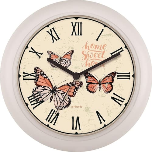 Mostrador: Com Algarismos Romanos e desenho de borboletas e frase "home sweet home"