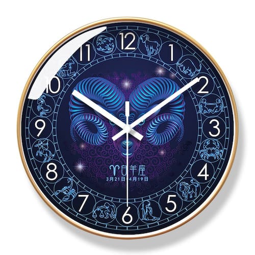 Material: Material da concha: plástico Material do espelho: vidro Material do mostrador: PVC Tamanho: 30 × 30 cm Peso: 0,98 kg incluindo embalagem Design astrológico: apresenta um impressionante símbolo do zodíaco de Áries e os 12 signos do zodíaco ao redor do mostrador, tornando-o perfeito para entusiastas da astrologia. Silencioso e sem tique-taque: o movimento silencioso de quartzo garante um ambiente tranquilo e silencioso, ideal para a sala de estar, quarto ou escritório. Construção de alta qualidade: feita com um mostrador de PVC durável, acabamento em espelho de vidro e moldura externa de plástico para uma aparência elegante e moderna. Tamanho perfeito: com 30 cm de diâmetro, este relógio decorativo se encaixa perfeitamente em sua casa ou escritório, combinando funcionalidade com estilo. Fácil instalação: operado por bateria para configuração sem complicações e manutenção mínima. Requer uma pilha AA (não incluída).