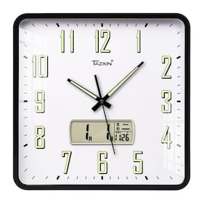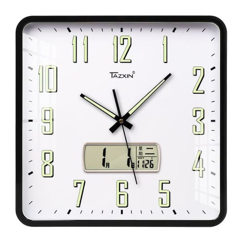 Material: Material da concha: plástico Material do espelho: vidro Material do mostrador: PVC Tamanho: 35 × 35 CM Peso: 1430 g Design moderno: apresenta uma forma quadrada elegante com uma face branca limpa e uma tela de calendário digital, oferecendo uma adição elegante e funcional a qualquer ambiente. Silencioso e sem tique-taque: o movimento de quartzo garante uma experiência silenciosa e sem tique-taque, perfeita para quartos, escritórios ou qualquer espaço silencioso. Funcionalidade dupla: inclui exibição de hora e data, oferecendo maior comodidade e ajudando você a se manter organizado. Números fáceis de ler: números pretos em negrito com detalhes que brilham no escuro para facilitar a leitura, mesmo com pouca luz. Construção durável: feita de materiais de PVC, vidro e plástico de alta qualidade para durabilidade duradoura e uma aparência elegante e moderna.