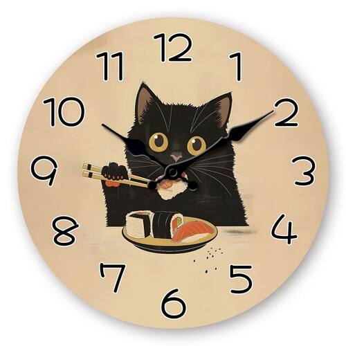 Material: Material da concha: madeira Material do espelho: Nenhum Material do mostrador: MDF Tamanho: 12 polegadas Peso: 560 g Design caprichoso de gato: apresenta um gato preto brincalhão saboreando sushi com pauzinhos, criando uma atmosfera divertida e peculiar perfeita para amantes de animais e comida. Silencioso e sem tique-taque: este relógio funciona silenciosamente sem o som de tique-taque, tornando-o ideal para cozinhas, quartos ou qualquer ambiente onde se deseje paz e sossego. Construção durável em MDF: feita de material MDF resistente, garantindo um relógio leve e durável com acabamento suave e design moderno. Perfeito para espaços casuais ou divertidos: adiciona um toque divertido às cozinhas, salas de jantar ou quartos e é um ótimo complemento para um tema de decoração divertido e alegre. Fácil de ler e elegante: com números ousados e fáceis de ler e um design simples, mas vibrante, este relógio de 12" complementa qualquer ambiente casual ou peculiar.