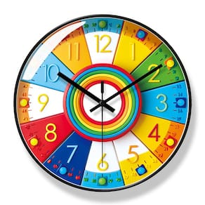 Material: Material da concha: plástico Material do espelho: vidro Material do mostrador: PVC Tamanho: 30 × 30 cm Peso: 1220 g Silencioso e sem tique-taque: este relógio apresenta um movimento de quartzo silencioso e sem tique-taque, criando um ambiente tranquilo no quarto ou na sala de jogos do seu filho. Design brilhante e educativo: o relógio apresenta cores vibrantes e um design divertido de desenho animado, tornando-o divertido e educativo para as crianças que aprendem a contar as horas. Números fáceis de ler: números grandes e em negrito em um design colorido garantem que as crianças possam ver e entender facilmente a hora, ajudando-as a aprender de uma forma divertida. Durável e leve: feito de plástico com espelho de vidro e mostrador de PVC, este relógio é durável e leve, perfeito para pendurar em qualquer ambiente. Operado por bateria: alimentado por uma única bateria AA (não incluída), este relógio exige pouca manutenção e é conveniente para o uso diário.