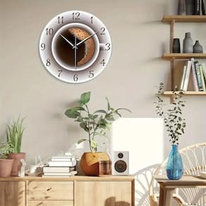Material: Material da casca: madeira Material do espelho: espelho de vidro de quartzo Material do mostrador: revestimento de papel Tamanho: 12 polegadas Peso: 495 g Design exclusivo de xícara de café: com um design criativo de xícara de café com manchas de café, perfeito para adicionar um toque divertido e elegante à sua cozinha ou área de jantar. Mecanismo silencioso sem tique-taque: o movimento de quartzo garante uma operação silenciosa, ideal para manter uma atmosfera pacífica na cozinha ou na sala de estar. Moldura de madeira durável: feita com uma estrutura de madeira resistente, oferecendo resistência e uma aparência clássica que se encaixa perfeitamente em várias decorações domésticas. Números fáceis de ler: números grandes e em negrito garantem que você possa verificar a hora com facilidade, mesmo à distância. Versátil para qualquer espaço: uma ótima peça decorativa para cozinhas, salas de estar, quartos ou áreas de jantar, combinando funcionalidade e estilo.