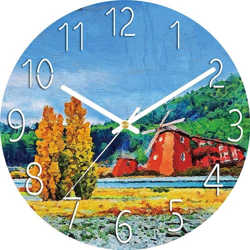 Material: Material da concha: vidro temperado Material do espelho: vidro temperado Material do mostrador: vidro temperado Tamanho: 30 × 30 CM Peso: 500 g Design campestre encantador: com um belo estilo de pintura a óleo com um moinho de vento e uma paisagem campestre vibrante, este relógio adiciona um toque rústico e artístico a qualquer ambiente. Silencioso e sem tique-taque: equipado com um movimento de quartzo silencioso e sem tique-taque para um ambiente silencioso e pacífico, perfeito para quartos, salas de estar ou escritórios. Vidro durável e elegante: feito de vidro temperado de alta qualidade com acabamento elegante e brilhante, este relógio combina durabilidade com estilo. Perfeito para decoração de casa: ideal para salas de estar, cozinhas, quartos ou escritórios, este relógio campestre aprimora os designs de interiores modernos e rústicos. Fácil de instalar: operado por bateria (bateria não incluída) para facilitar a instalação sem a necessidade de cabos ou fios, facilitando a colocação em qualquer lugar.