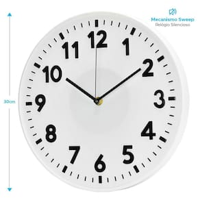 Relógio de Parede Cozinha 30cm Silencioso Urban Fosco Cor: Branco Perfeito para quem busca uma opção única e estilosa para a casa, este relógio é feito de material resistente, com acabamento reforçado, números grandes e design moderno. Seu mecanismo é ultra silencioso sem tic-tac e de baixo consumo, funcionando com apenas 1 pilha AA pilha comum .