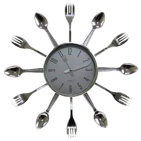 Relógio de Parede Cozinha Talheres Estilo Retro Prateado Relógio de Parede Cromado - Design de Talheres Garfo e Colher