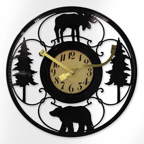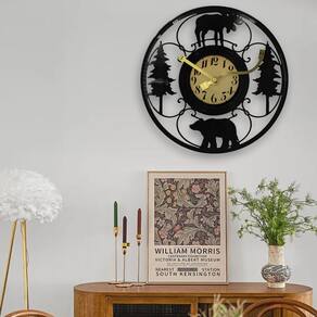 Material: Material da concha: metal Material do espelho: metal Material do mostrador: PVC Tamanho: 30 × 30 cm Peso: 2000 g Design inspirado na natureza: este relógio de parede apresenta um design encantador de urso e alce em um cenário de árvores, perfeito para amantes da natureza e espaços com temas rústicos. Silencioso e sem tique-taque: desfrute de uma atmosfera tranquila com o movimento silencioso do relógio, tornando-o ideal para quartos, salas de estar ou escritórios onde você precisa de paz e sossego. Durável e elegante: feito de metal de alta qualidade para a moldura e PVC para o mostrador, este relógio combina durabilidade com uma aparência elegante e moderna. Números fáceis de ler: os números pretos claros contra um mostrador dourado garantem que a hora seja fácil de ler de qualquer ângulo. Decoração versátil: com 30 cm (12”), este relógio de parede é perfeito para adicionar um toque rústico a qualquer espaço, seja uma cabine, sala de estar, escritório ou decoração com tema natural.