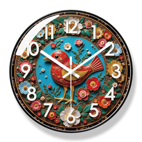 Material: Material da concha: plástico Material do espelho: vidro Material do mostrador: PVC Tamanho: 30 × 30 cm Peso: 1220 g Movimento silencioso de quartzo: desfrute de um ambiente tranquilo com este relógio que não bate, ideal para salas de estar, quartos ou escritórios. Design floral artístico: apresenta um pássaro vermelho vibrante e um padrão floral intrincado, trazendo um toque animado e criativo a qualquer ambiente. Nítido e fácil de ler: números brancos em negrito e ponteiros pretos contrastantes garantem visibilidade clara e facilidade de leitura à distância. Mostrador de PVC durável: feito de PVC de alta qualidade, este relógio é leve e durável, garantindo um desempenho duradouro. Perfeito para interiores modernos: o design elegante e contemporâneo combina perfeitamente com a decoração moderna de casa e escritório.