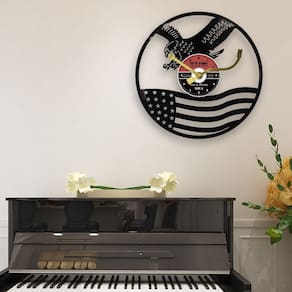 Material: Material da concha: metal Material do espelho: metal Material do mostrador: PVC Tamanho: 30 × 30 cm Peso: 2000 g Design exclusivo com uma águia ousada voando com a bandeira americana, perfeito para amantes do patriotismo e da liberdade. O movimento silencioso e sem tique-taque de quartzo garante um ambiente silencioso, mantendo a precisão do tempo. Caixa de metal durável com um elegante mostrador de relógio em PVC, combinando charme retrô e funcionalidade moderna. Ideal para casa, escritório ou espaços com temas militares, adicionando uma declaração poderosa a qualquer ambiente. Mostrador de relógio fácil de ler com ponteiros ousados, oferecendo uma mistura de praticidade e apelo artístico.