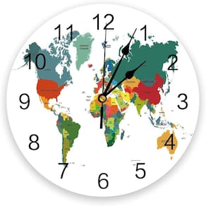 Material: Material da concha: madeira Material do espelho: madeira Material do mostrador: madeira Tamanho: 30 × 30 cm Peso: 400 g Design exclusivo: apresenta um mapa-múndi colorido com números claros e fáceis de ler, perfeito para adicionar um toque global a qualquer ambiente. Silencioso e sem tique-taque: desfrute de uma atmosfera tranquila e pacífica com o mecanismo antitique-taque, ideal para salas de estar, quartos ou escritórios. Durável e moderno: feito com uma estrutura de madeira resistente, mostrador de madeira e acabamento espelhado para uma aparência elegante e moderna. Tamanho perfeito: Medindo 30 cm de diâmetro, este relógio é o complemento perfeito para qualquer espaço doméstico ou de escritório, oferecendo beleza e funcionalidade. Fácil de instalar: operado por bateria para configuração sem complicações e manutenção mínima. Requer uma pilha AA (não incluída).