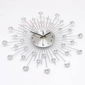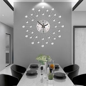 Material: Material da concha: metal Material do espelho: metal Material do mostrador: metal Tamanho: 33* 33 cm Peso: 2.000 g Impressionantes detalhes em cristal: este relógio de parede de 15" apresenta um design elegante de brilho solar com detalhes cintilantes em cristal, adicionando um toque de glamour a qualquer ambiente. Silencioso e sem tique-taque: desfrute de uma atmosfera pacífica com esse movimento de quartzo silencioso e sem tique-taque, perfeito para quartos, salas de estar ou escritórios. Construção metálica durável: feito com materiais metálicos de alta qualidade, este relógio é durável e elegante, proporcionando beleza duradoura ao seu espaço. Design moderno e elegante: o design exclusivo combina estilo moderno com um toque de luxo, tornando-o um complemento perfeito para qualquer decoração contemporânea ou minimalista. Fácil de instalar: leve e fácil de montar, este relógio operado por bateria é uma maneira fácil de aprimorar a decoração da sua casa.