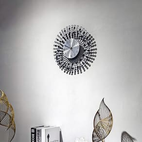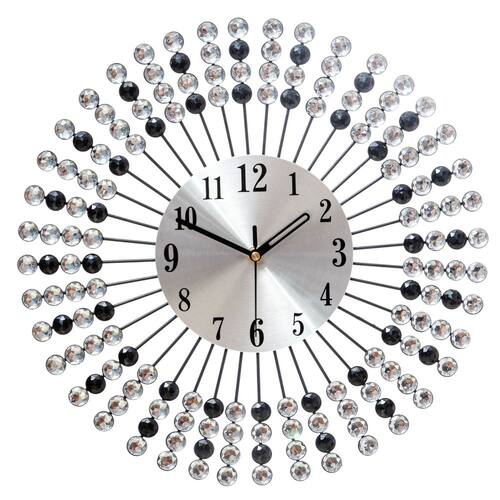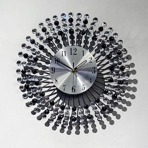 Material: Material da concha: metal Material do espelho: metal Material do mostrador: metal Tamanho: 38 × 38 CM Peso: 1000 g Design elegante: apresenta um padrão exclusivo de brilho solar com detalhes em preto e cristal, criando uma estética elegante e moderna para qualquer ambiente. Silencioso e sem tique-taque: desfrute de uma atmosfera pacífica com o movimento silencioso de quartzo, tornando-o perfeito para quartos, salas de estar ou escritórios. Construção metálica durável: fabricada com metal de alta qualidade para a moldura, o mostrador e a superfície do espelho, oferecendo durabilidade duradoura e aparência elegante. Tamanho perfeito: com 15 polegadas (38x38 cm) de diâmetro, este relógio se encaixa perfeitamente em espaços maiores, adicionando um toque de sofisticação à sua decoração. Fácil instalação e operação com bateria: simples de configurar com um design alimentado por bateria (é necessária 1 bateria AA, não incluída).