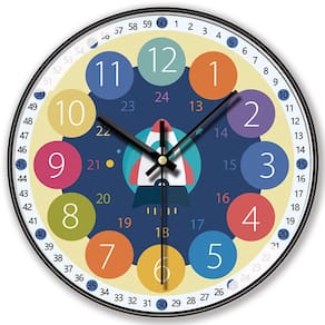 Material: Material da concha: plástico Material do espelho: vidro comum Material do mostrador: revestimento de papel Tamanho: 14 polegadas Peso: 1100 g Mecanismo silencioso e sem tique-taque: desfrute de um ambiente silencioso com este relógio educacional silencioso e sem tique-taque, perfeito para quartos infantis ou áreas de estudo. Design divertido e colorido: com um foguete divertido e números vibrantes, este relógio torna o aprendizado de contar as horas divertido e envolvente para as crianças. Construção de alta qualidade: feito com plástico durável para a moldura e o mostrador coberto de papel, este relógio de 14 polegadas combina longevidade com um design atraente. Números fáceis de ler: os números coloridos e em negrito no mostrador ajudam as crianças a identificar facilmente horas e minutos, aprimorando sua experiência de aprendizado. Perfeito para quartos infantis: ideal para quartos, salas de jogos ou espaços educacionais, este relógio serve como uma ferramenta prática e uma peça decorativa divertida.