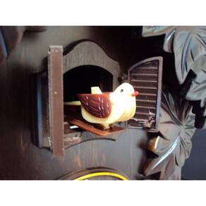 Cuco - 5386 Estilo: Clássico Medidas: 48x29x13 cm Só a casinha Altura Total Montado 70 cm Características Técnicas: Estrututa em Madeira Entalhada Toque de Cuco nas Horas Cheias Sensor noturno silencia a noite Pêndulo Móvel Usa pilha tamanho D Madeira de Reflorestamento tratada Cores Disponíveis: Ipê igual as fotos Mais Informações sobre o produto Base em Madeira Tingida Botões de regulagem na parte lateral do produto Produto de madeira sujeito a variação na tonalidade. Controle de Volume Alto, Baixo, Desligado A cada hora o pássaro sai, bate as asas e abre o bico e canta CUCO-cuco, CUCO-cuco conforme o número de horas, sempre de 1 a 12 vezes. Marca: Não Informado Ean: 7897280317668